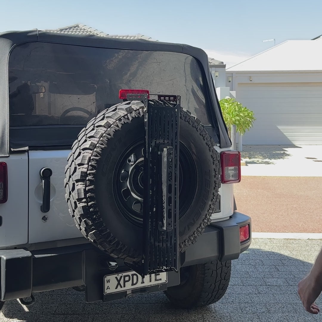 The bracket offers flexible sizing from 28in to 35in tyres, and straps securely to the spare tyre with a durable Stainless Steel (lockable) ratchet.